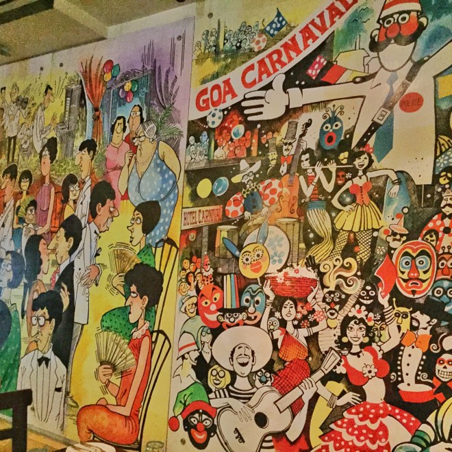 it ended up being a little pricier than i had anticipated because our pomfret was so big [prices are based on weight] and because i opted for jack daniel’s instead of a cheaper drink, but i was still happy with the visit. it’s a very family-friendly restaurant, and it was nice to have a relaxing dinner out on a saturday night without having to deal with huge crowds or ridiculously loud music. and they have goan sausages, so it’s safe to say i am a fan. i also very much liked the murals inside, and it looked like it would be a nice setting when the weather is too warm to sit outside.