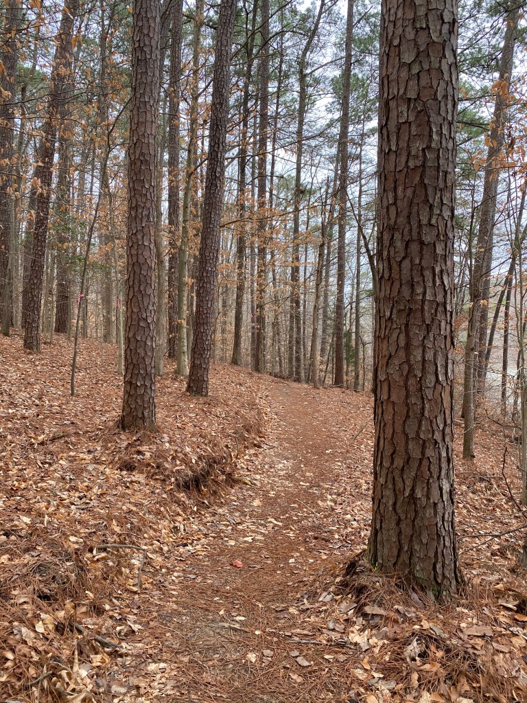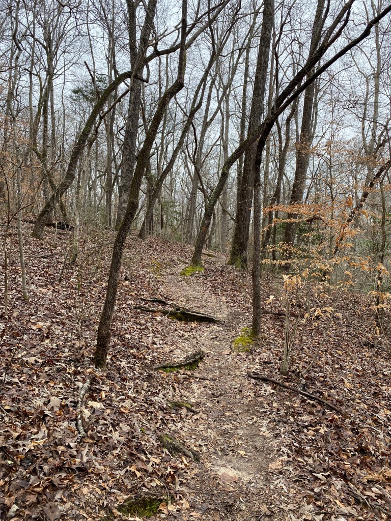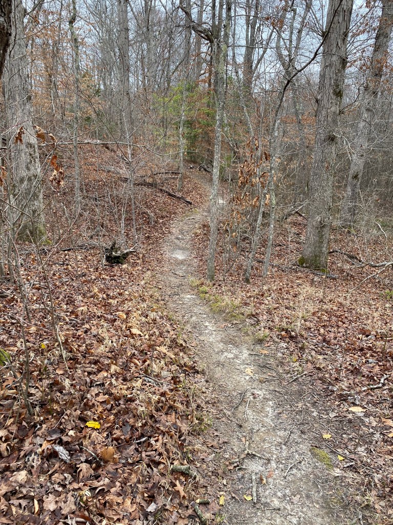 - the trail rises and falls pretty steadily — you do wind up going uphill a good bit, but there was never a super strenuous incline like there are in shelby forest