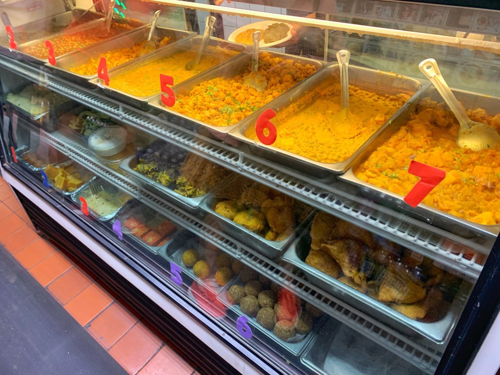 maggie got up early on friday morning to do some work for her class at brookside while molly and i slept in, and then she brought us pastries and coffee for breakfast. we had been wanting to check out the dosa man who sets up in washington square park, but he wasn’t there so we decided to check out punjabi grocery and deli instead. i first read about them in roads & kingdoms a few years ago and then was reminded of them last year when oneika did a story on them, so it felt like the perfect time to pay a visit.