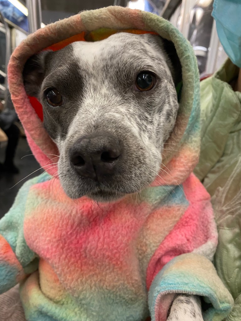 sweet baby ruka rides the subway. queens, new york. november 2022.