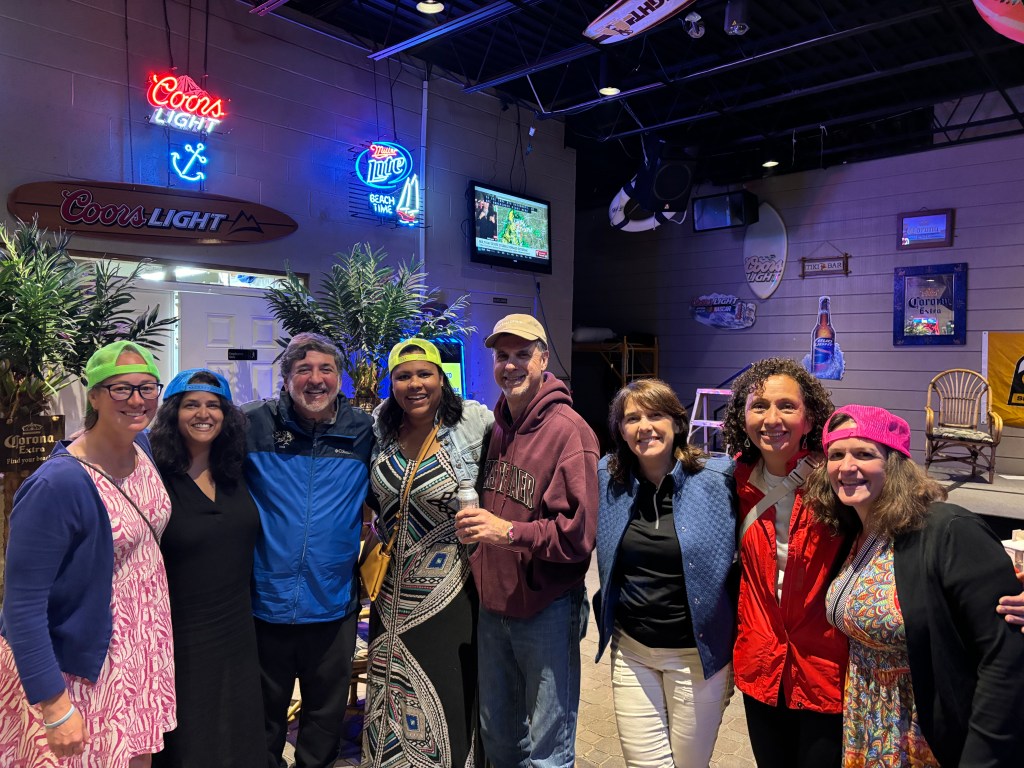 our neighbor jeanne had recommended twisted rail brewing at the top of the lake as a good local spot, so that was our friday night dinner spot. we got food and drinks and a table on the deck where we could enjoy the live music and the weather — it was the exact perfect place and we had a great time. this is also where jane taught us how to play taco cat goat cheese pizza which is my new favorite card game.