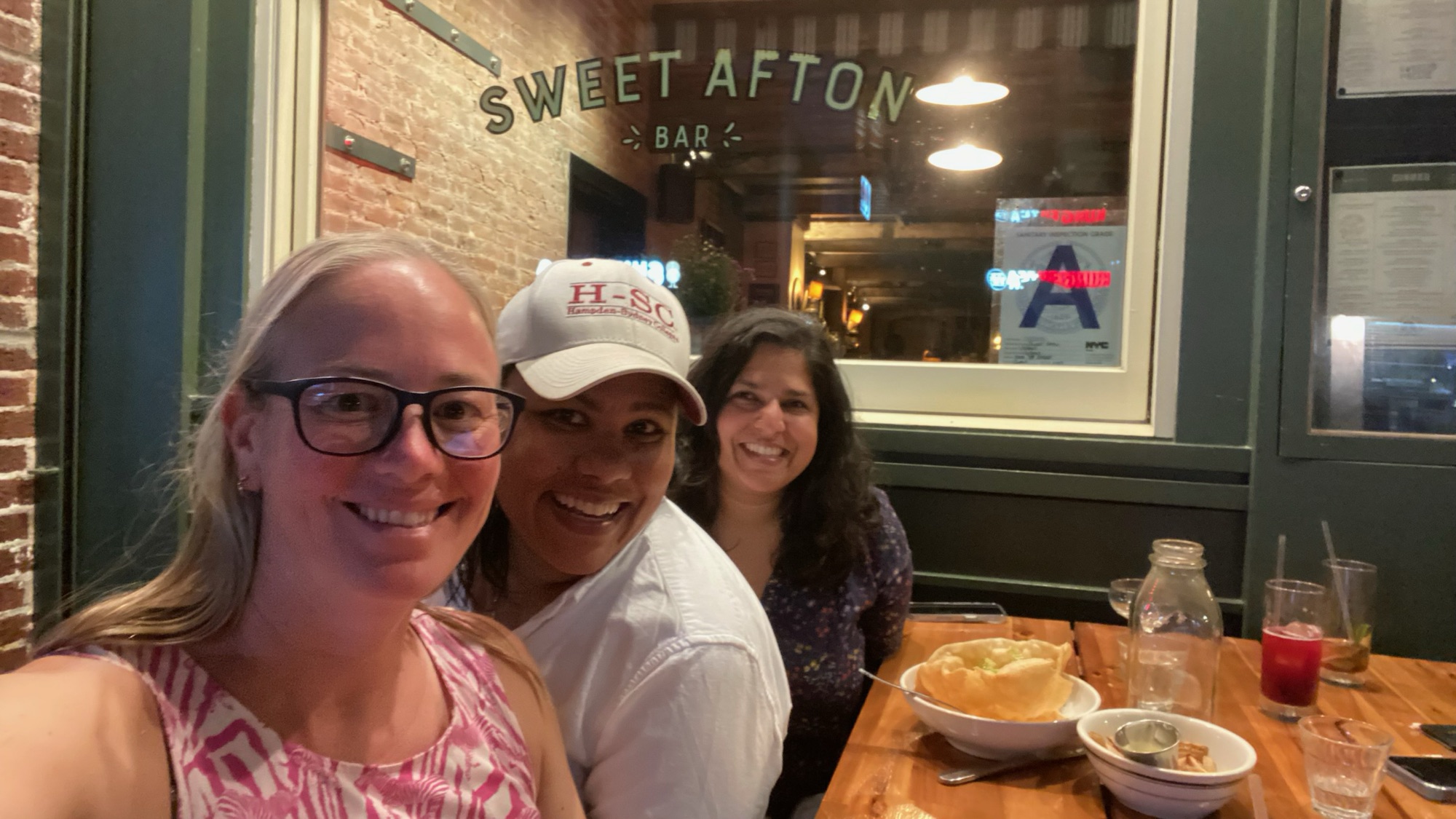 jane arrived midday thursday, chrystal landed around 5, and dillard had to deal with flight delays and only got in around midnight. chrystal and i had a few drinks at shady lady before meeting jane at sweet afton for dinner. we had an early night so we could get some rest for our drive the next day.