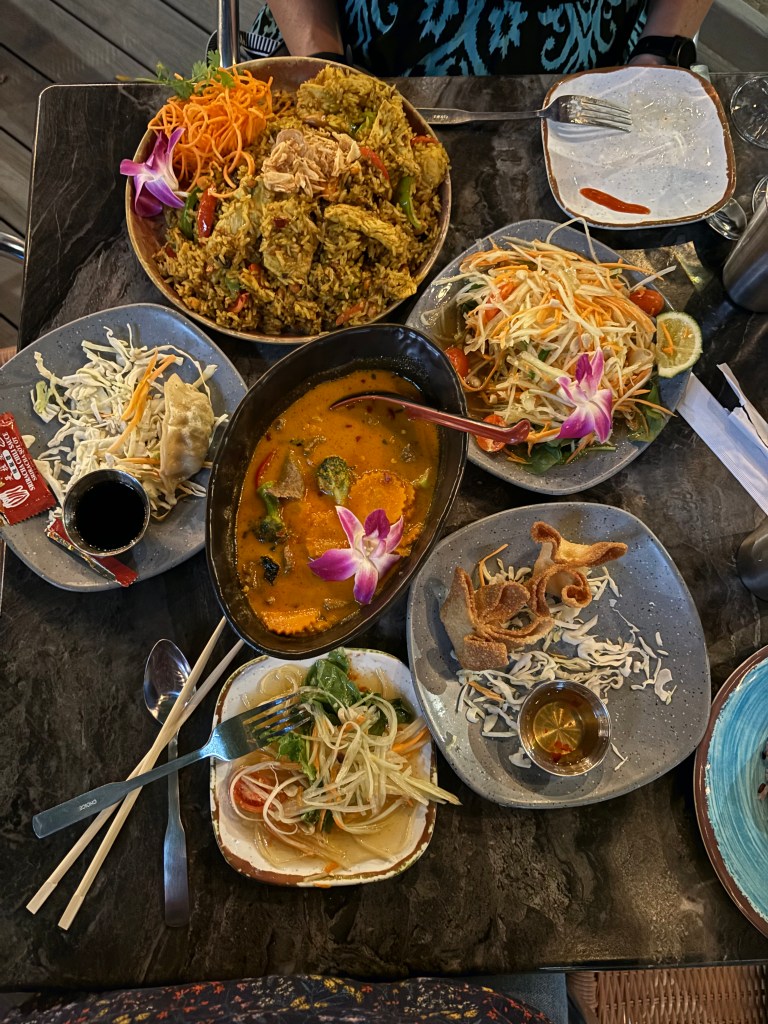 we settled on thai for our first night and walked over to aloy thai eatery; we ordered at the counter and hovered outside until someone left [to be fair, they had clearly been done for a while] so we could snag one of the patio tables. our food was delicious, and we happily carted the leftovers back to our hotel knowing they would come in handy after the show on sunday night. pro tip: tables are at a premium, so be prepared to wait especially during peak meal times