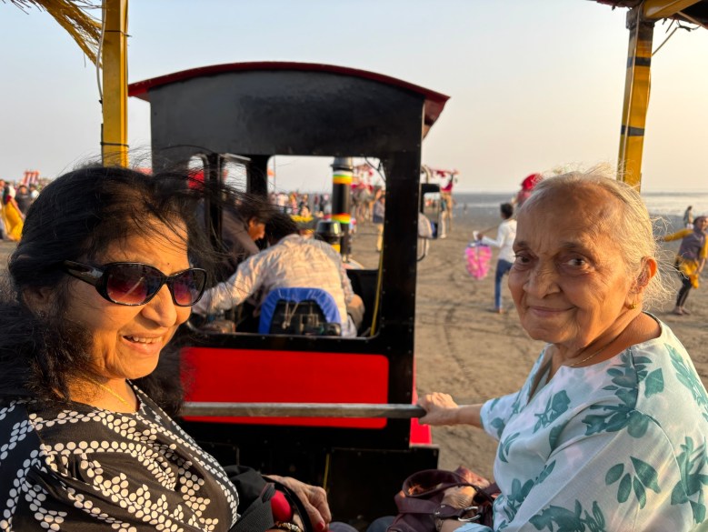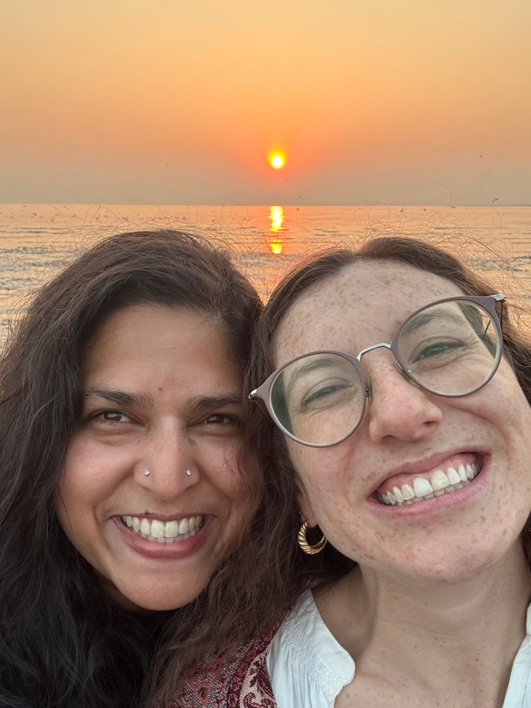 sarah and i went for a walk one morning to the atm; the four of us went for dinner at geetha one night and to sasumaa for a gujarati thali lunch; and my cousin’s friend manisha drove us one evening to dumas beach.