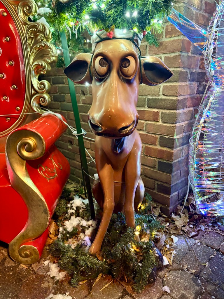 we had a great time looking at all the lights and other decorations and speculating on the people who live in the houses. some are more traditional, with nativity scenes and “buon natale” in lights, and others are more contemporary, with mickey and minnie mouse and a dinosaur there to wish you a merry christmas.