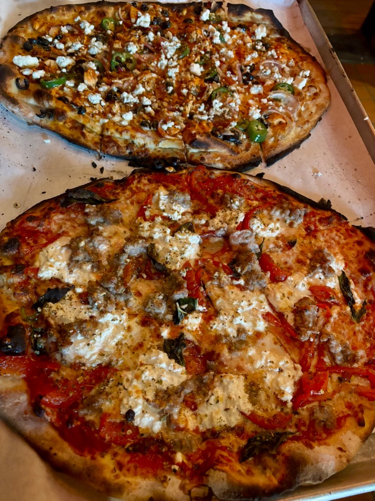 this whole adventure was a real make-it-up-as-we-go situation, and after we drove through new haven on the way to providence and i mentioned that new haven is known for their pizza, jeremy said “why don’t we stop in new haven on our way back and try some of their pizza” which i thought was a splendid idea. i texted sanjeet and benjamin for recommendations and based on their enthusiasm we found ourselves at bar. i appreciate that their entire food menu is one type of salad and then various kinds of pizza; we shared a plate of salad, jeremy had the buff chick pizza, and i had the portrait of new haven pizza. all the food was excellent and we both came home with lots of leftovers.